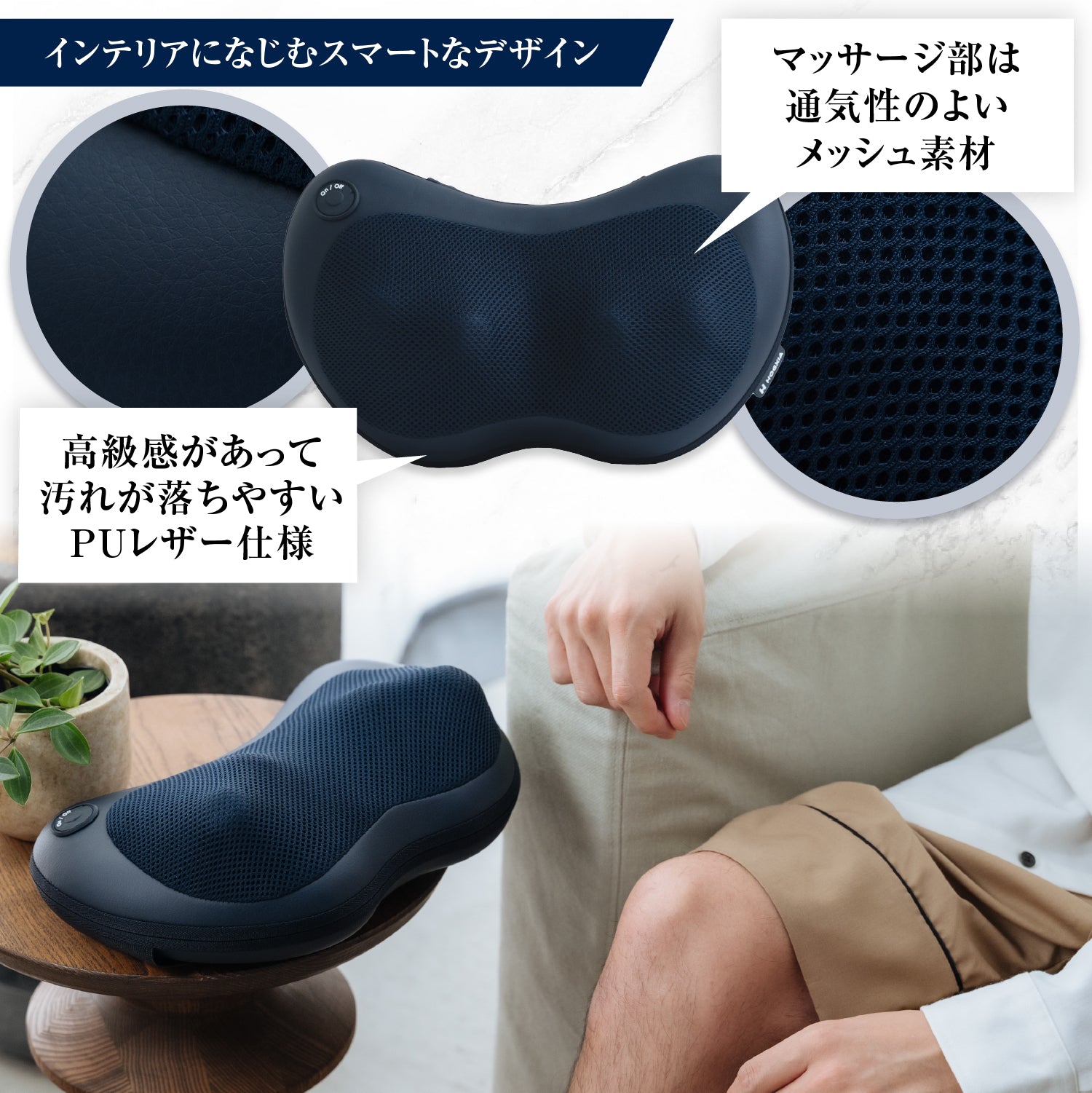 揉み玉が可動する部分はメッシュになっていて生地は柔らかく薄め